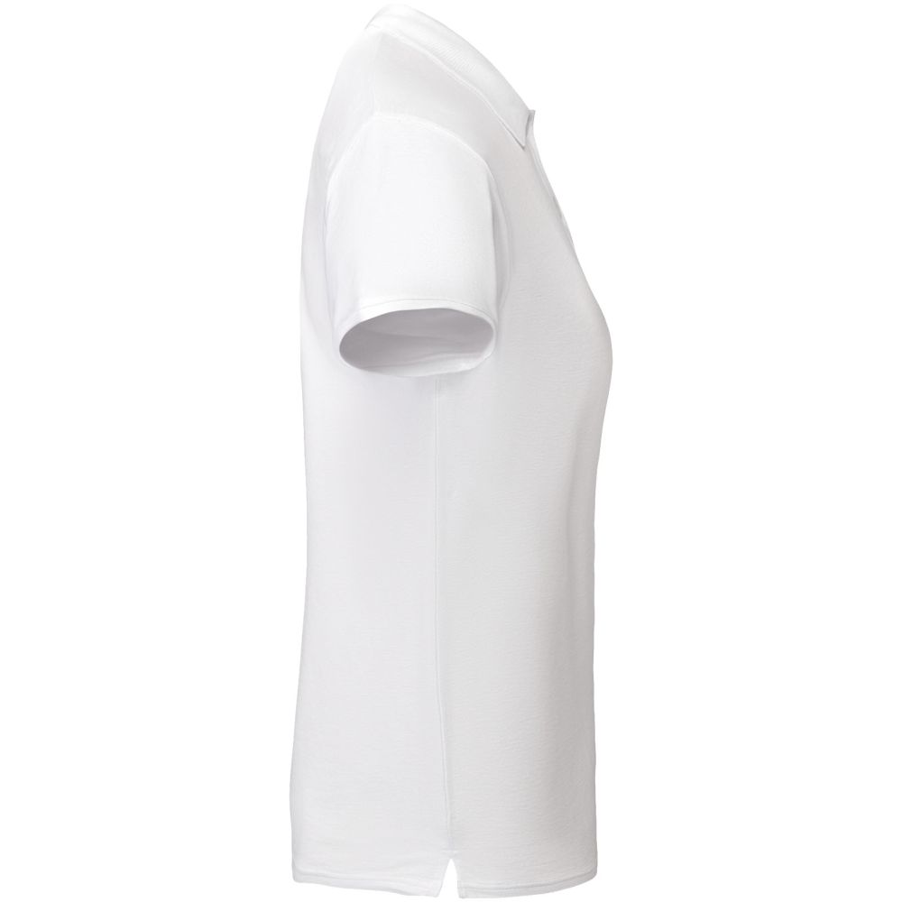 Fitted short-sleeve polo shirt for women in OCS certified organic cotton. 1x1 ribbed collar and sleeve edging. 2-button placket. Reinforced covered seams in collar. Side slits on hem. Removable label. OCS organic fabric. The model is 174 cm and is wearing size S.