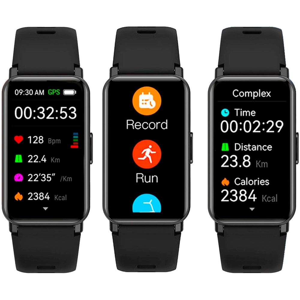 The AT806 smartband has 37 different sport modes and GPS functionality. Compatible with iOS and Android, and it can receive and display notifications from the connected smartphone. Comes with a large battery that can provide up to 7 days of autonomy. 1.45” HD touch screen with 172x320 resolution. Waterproof level IP68. Dimensions: 42,8 x 1,23 x 2,5 cm