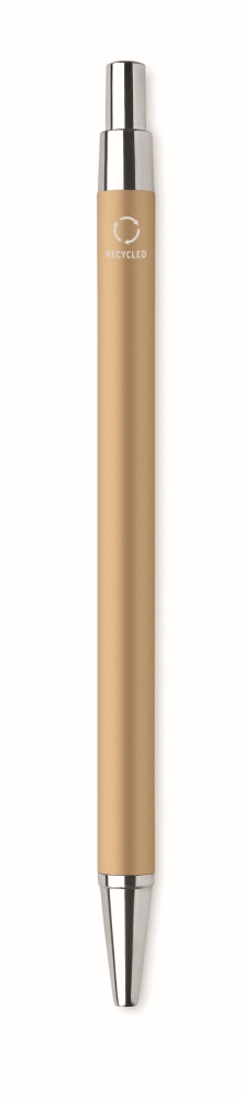 Push button ball pen in recycled aluminium. Blue ink. A classic office essential with a sustainable twist. The aluminium look gives this pen a more premium look and feel. Dimensions: O 0,8 x 14 cm