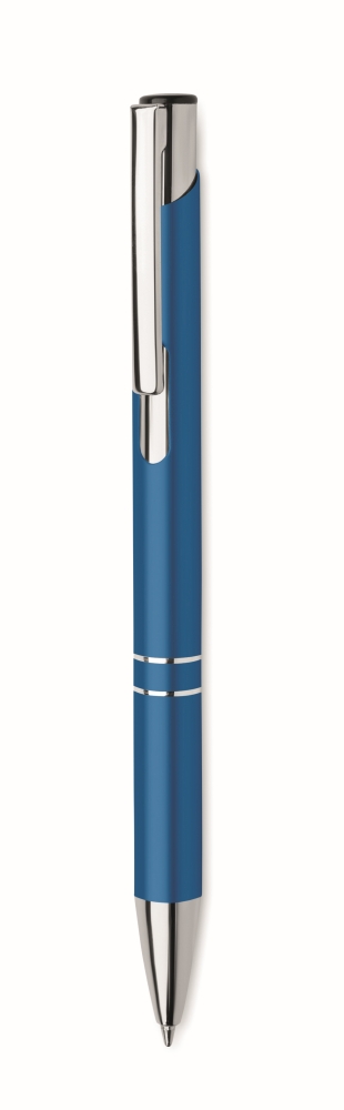 Push button ball pen in recycled aluminium. Blue ink. A classic and simple designed office essential. The aluminium barrel gives it a more premium look. Dimensions: O 1 x 13,7 cm