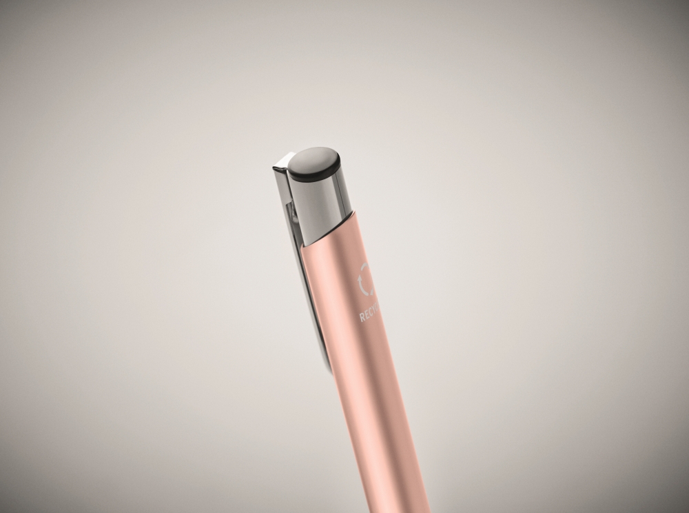 Push button ball pen in recycled aluminium. Blue ink. A classic and simple designed office essential. The aluminium barrel gives it a more premium look. Dimensions: O 1 x 13,7 cm