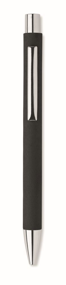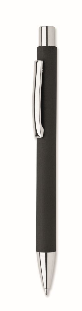 Push button ball pen in recycled paper and metal clip and plastic fittings. Blue ink.