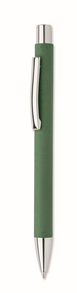 Push button ball pen in recycled paper and metal clip and plastic fittings. Blue ink.