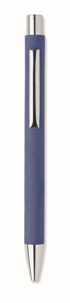 Push button ball pen in recycled paper and metal clip and plastic fittings. Blue ink.