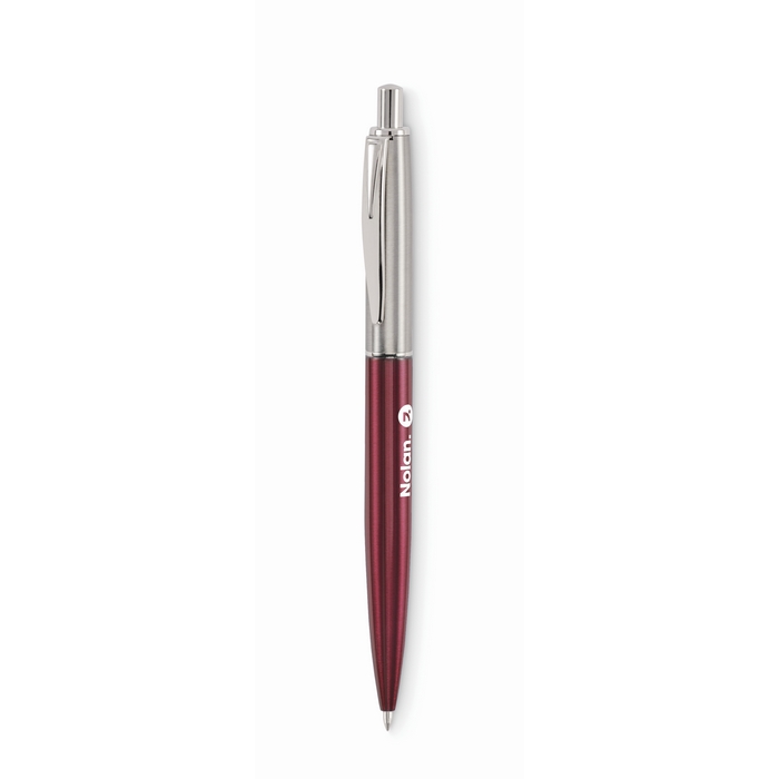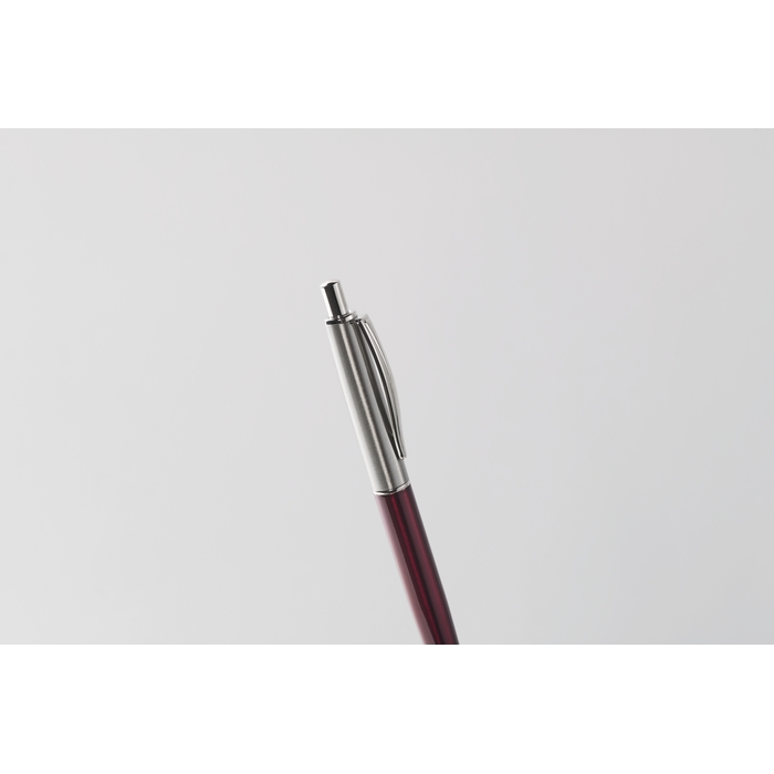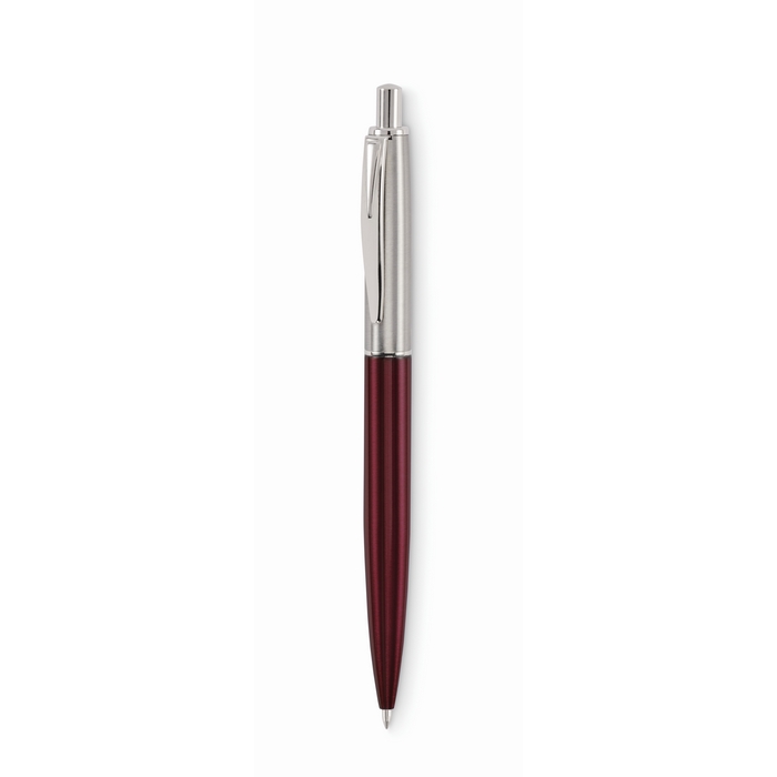 Push button ball pen in recycled stainless steel barrel. Blue ink. Presented in gift box.Dimensions: 17,5 x 2,8 x 2,2cm
