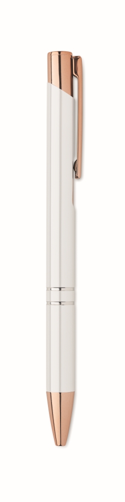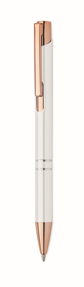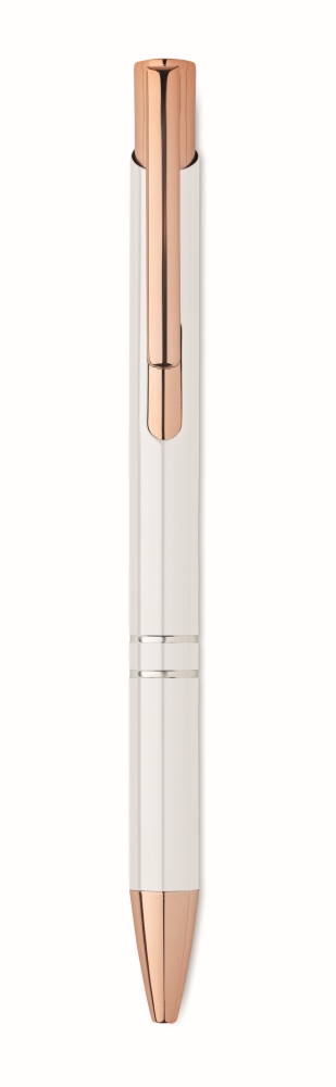Push button pen in recycled aluminium. Blue ink. Dimensions: O 1 x 13,5 cm