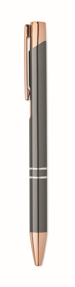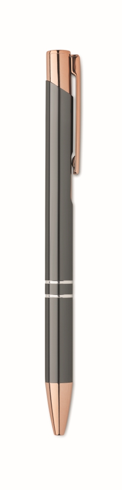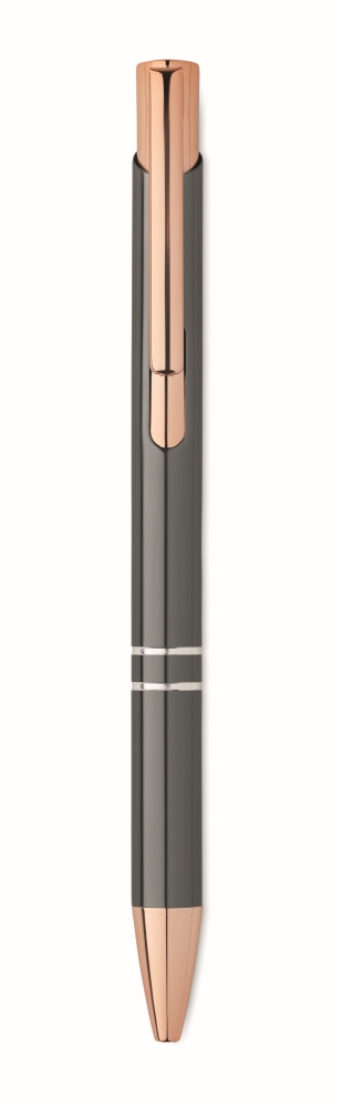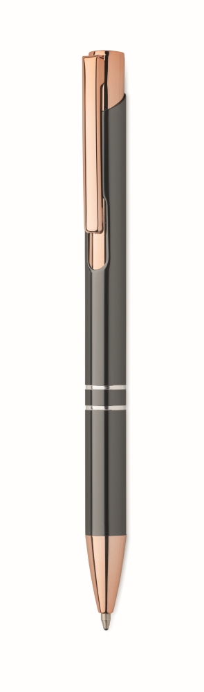 Push button pen in recycled aluminium. Blue ink. Dimensions: O 1 x 13,5 cm