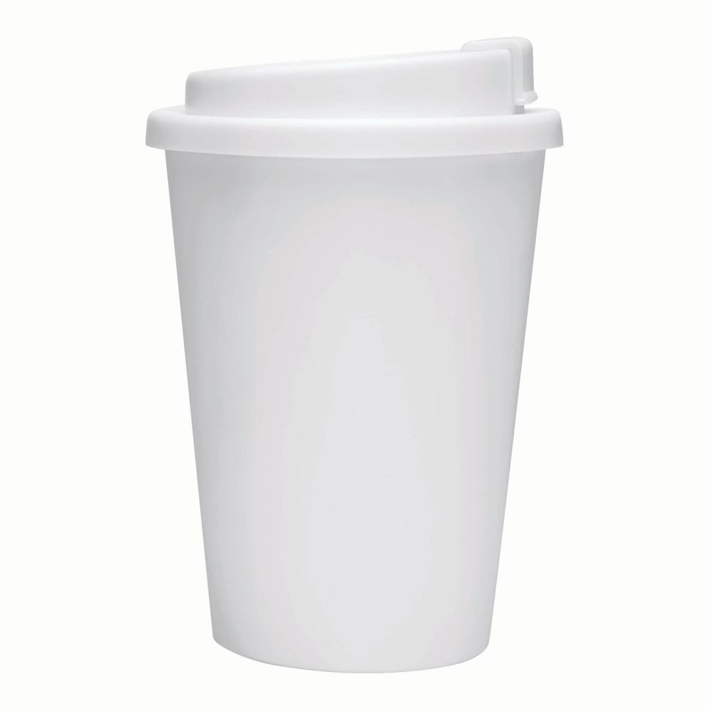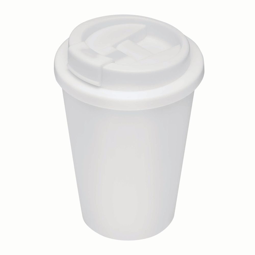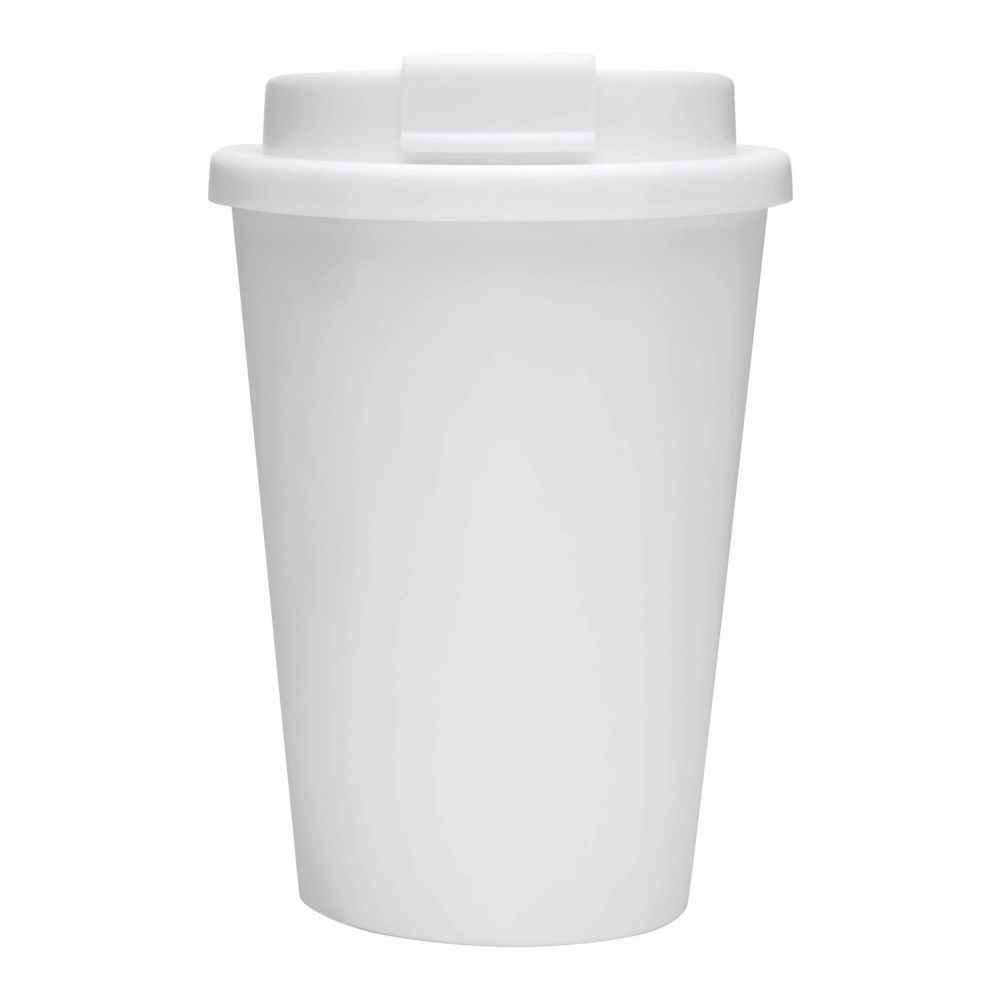 Insulated cup RE-USE, double-walled: secure screw cap with silicone seal and integrated drinking opening that can be folded open, recycled material, capacity approx. 300 ml, keeps warm for up to 2 hours and cold for up to 4 hours