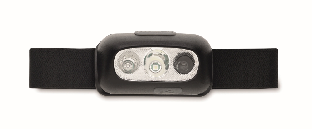 Rechargeable and adjustable head torch with 1 LED light (50 lumen) and 3 lightning modes. Built in 400 mAh rechargeable battery and including charging cable. Dimensions: 7 x 4 x 7 cm