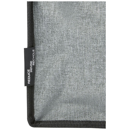 The Reclaim 4-can cooler bag features an exterior made from 100% GRS certified recycled PET plastic, making it a sustainable choice. Features a fold-over closure and a grab handle for easy carrying.