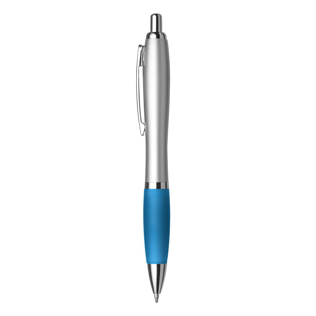 Recycled ABS ballpen with rubber grip. Blue ink.