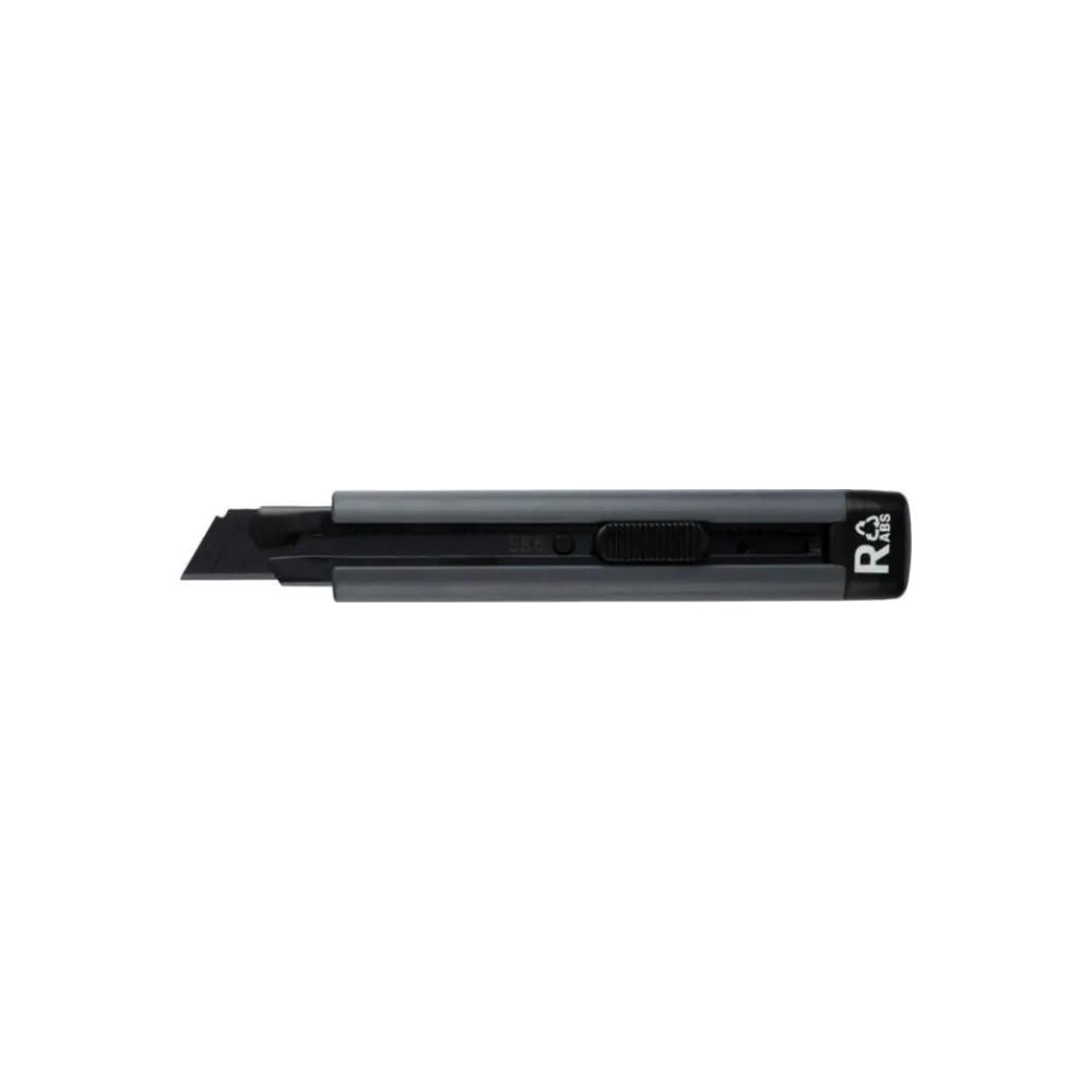 Recycled ABS hobby knife with snap-off blades, including a recycled ABS logo. Individually packaged in a brown carton box.