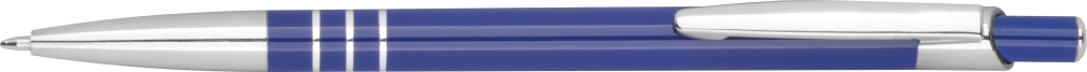 Biros in slim shape made of recycled aluminium, with blue refill and three decorative rings. We laser engrave your logo to the right of the clip. Dimensions: o 0,8 x 14,2 cm