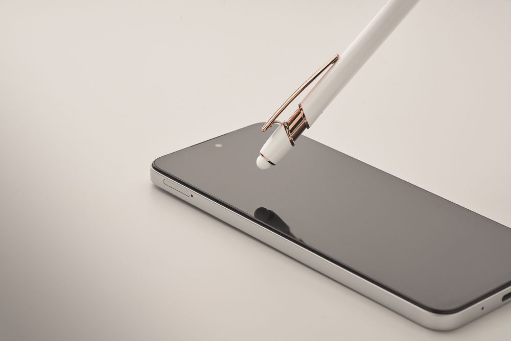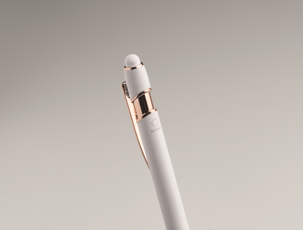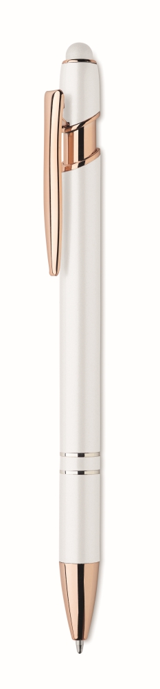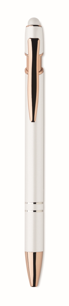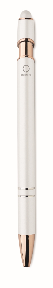 Recycled aluminium stylus push ball pen with rose gold details. Blue ink. Dimensions: O 1 x 14,3 cm