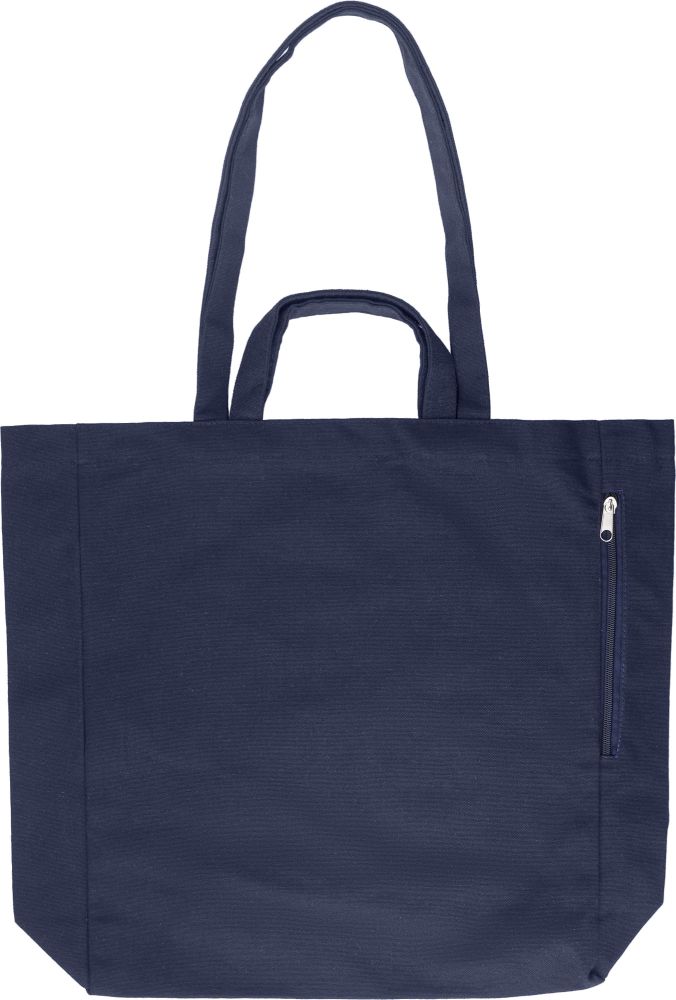 Recycled cotton (350 g/m2) shopping bag with short and long handles. Pocket with zipper on the side.