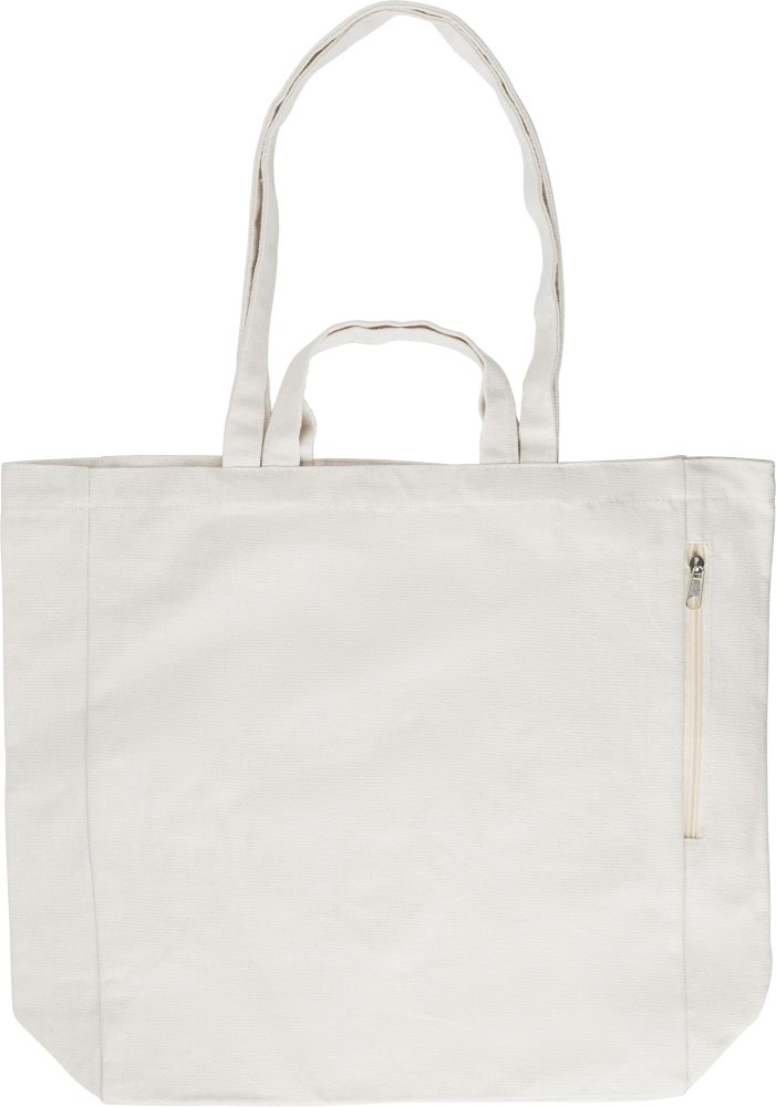 Recycled cotton (350 g/m2) shopping bag with short and long handles. Pocket with zipper on the side.