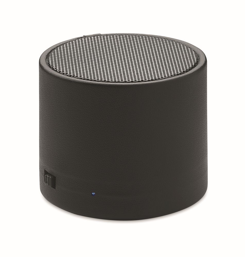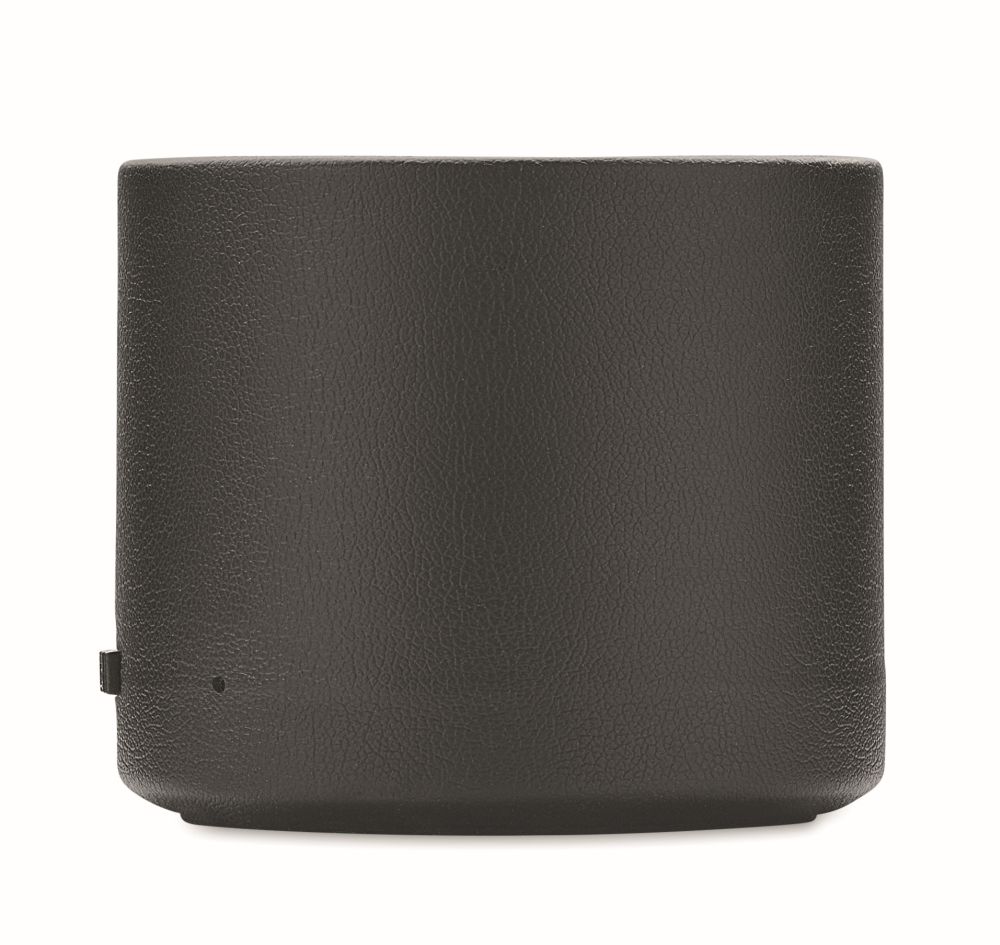 5.0 wireless speaker with casing in ABS and PU which is 58% recycled (40% recycled polyester and 18% recycled PU) and LED light indication. Output data: 3W, 3 Ohm and 5V. Playing time approx. 3h.
