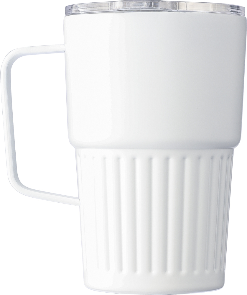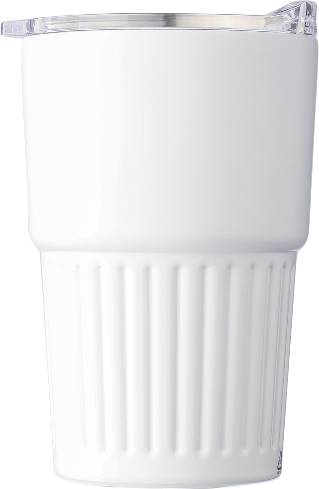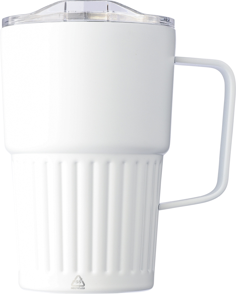Recycled stainless steel travel mug (450 ml) Calo, white