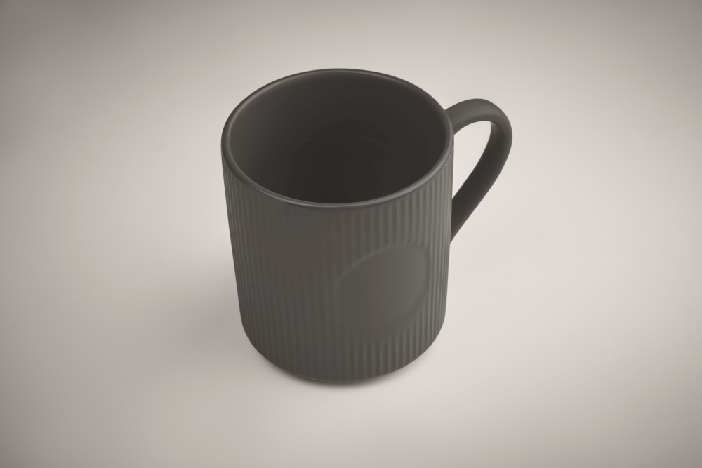 Ribbed ceramic mug in matte colour. Capacity: 340 ml. Dimensions: O 8,7 x 9,5 cm