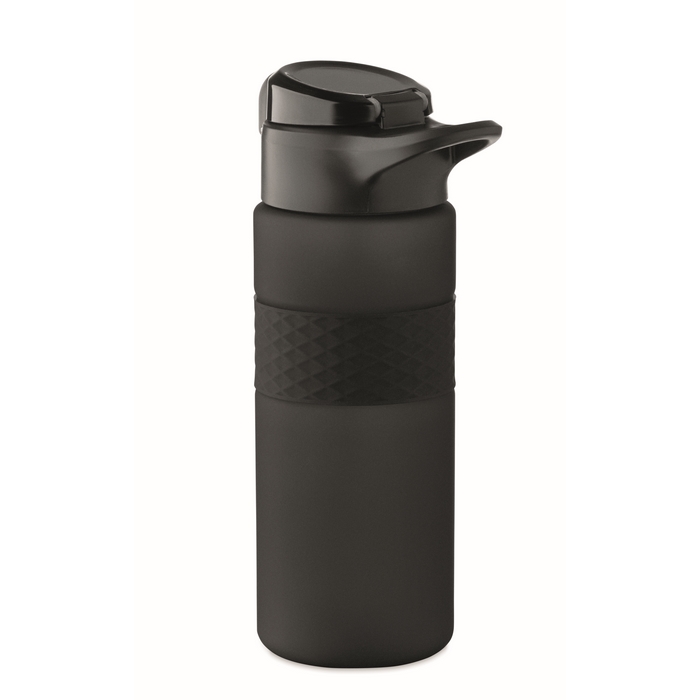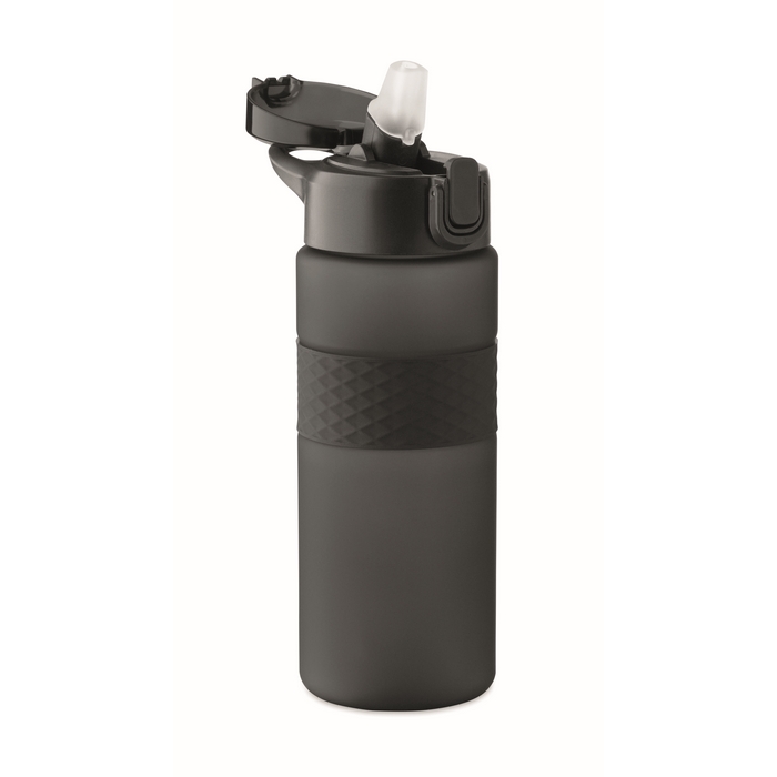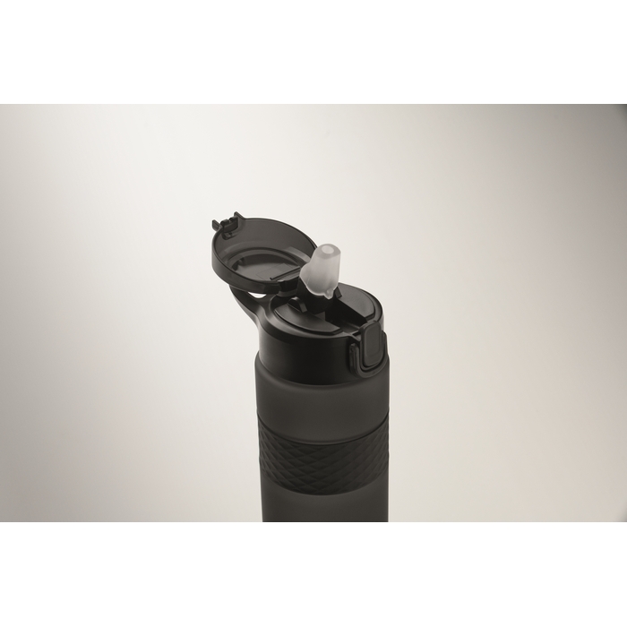 Drinking bottle made from RPET with silicone grip, PP flip-top lid and safety lock. Including integrated straw. Leak-free. Capacity: 700 ml.Dimensions: 10,8 x 7,5 x 22,4cm