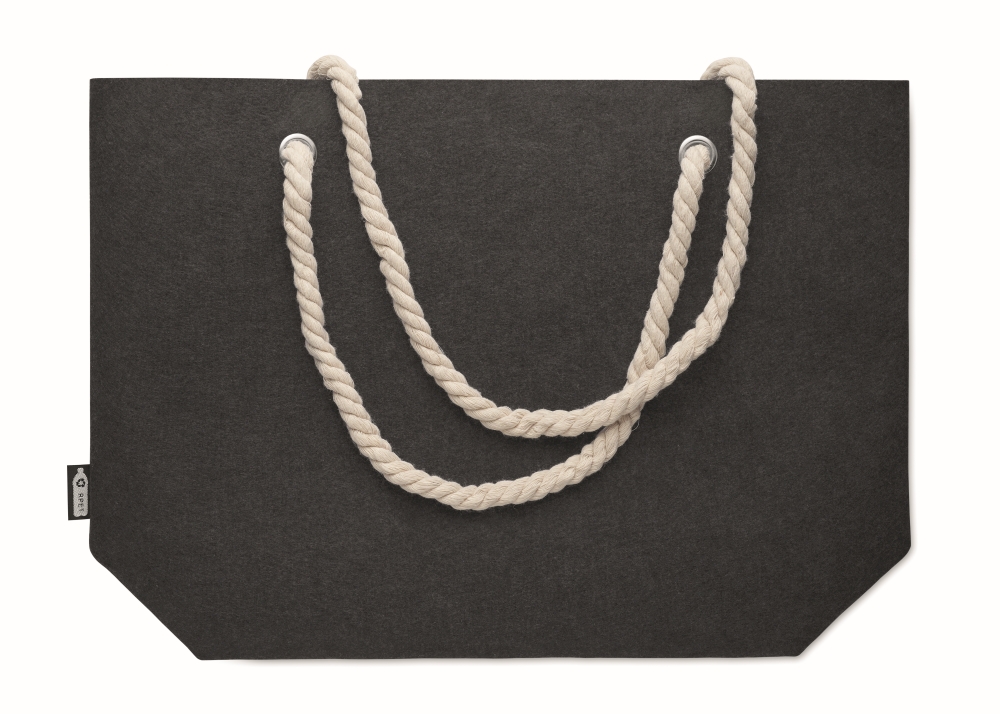 RPET felt beach bag or shopping bag with cord handle. Felt thickness: 2 mm. Dimensions: 46 x 13 x 32 cm