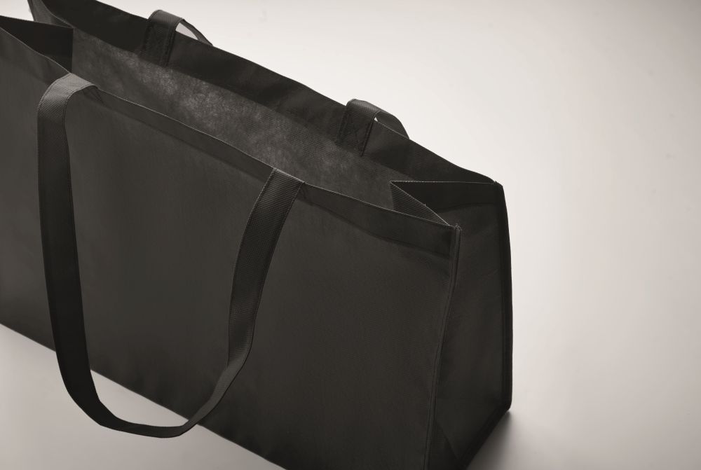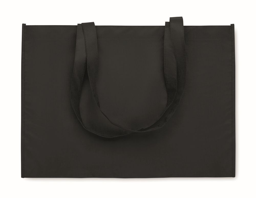 Shopping or beach bag in RPET non-woven with gussets and long handles. 80 gr/m².