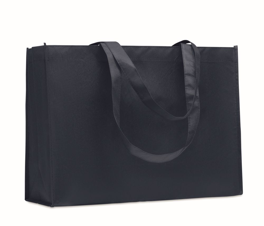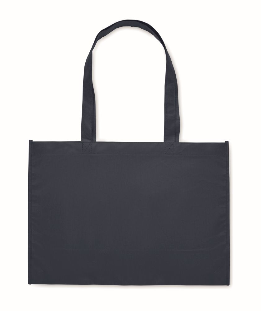 Shopping or beach bag in RPET non-woven with gussets and long handles. 80 gr/m².