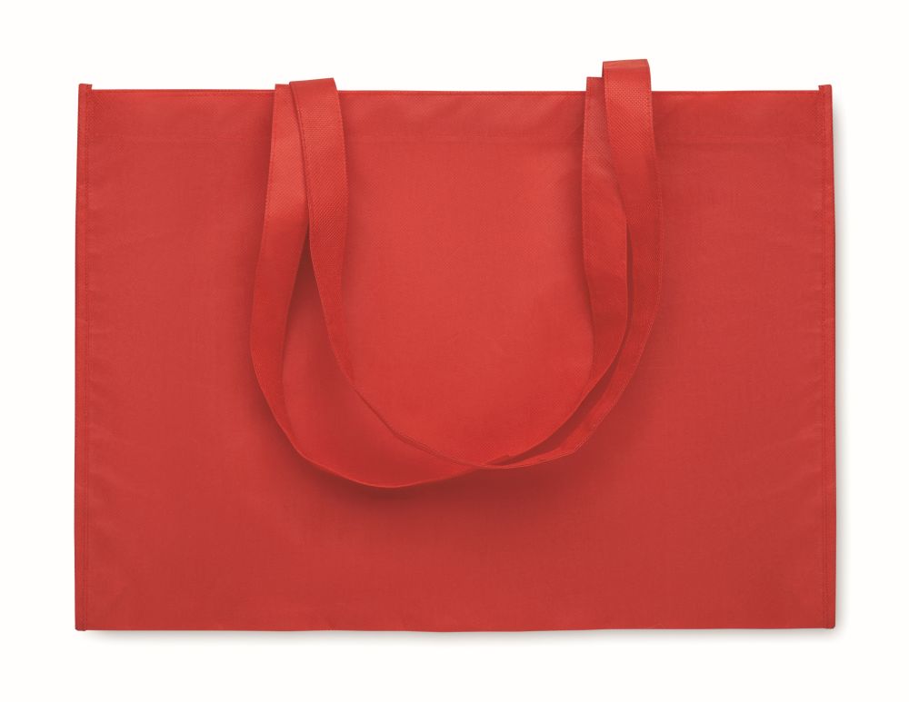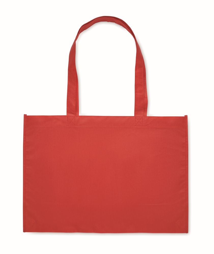Shopping or beach bag in RPET non-woven with gussets and long handles. 80 gr/m².