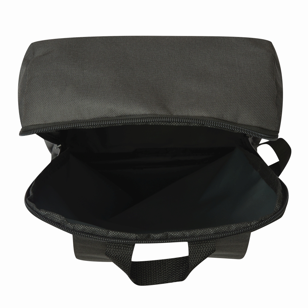 1 front pocket with vertical zip, 1 main compartment with zip, handle, adjustable padded shoulder straps approx. Dimensions: approx. 27 x 13.5 x 43 cm