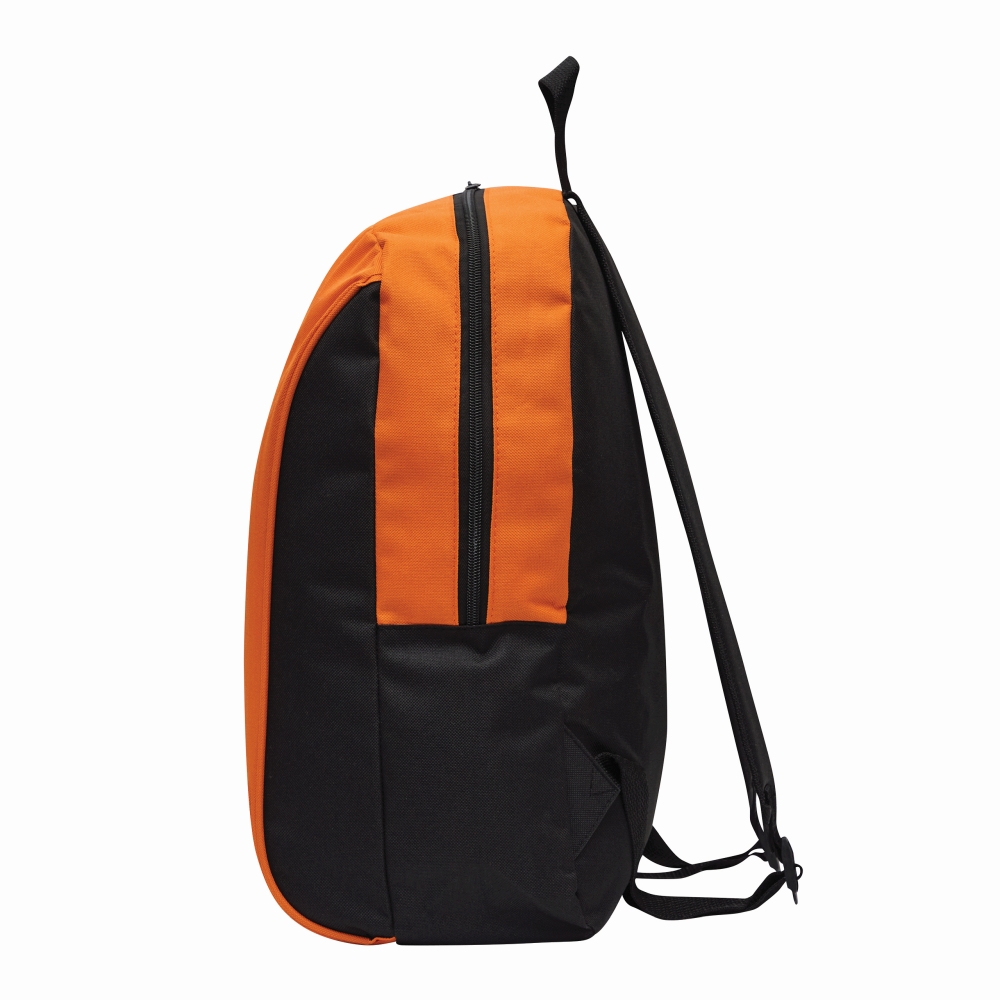 1 front pocket with vertical zip, 1 main compartment with zip, handle, adjustable padded shoulder straps and padded back panel. Dimensions: approx. 31 x 18.5 x 43 cm