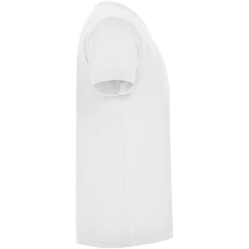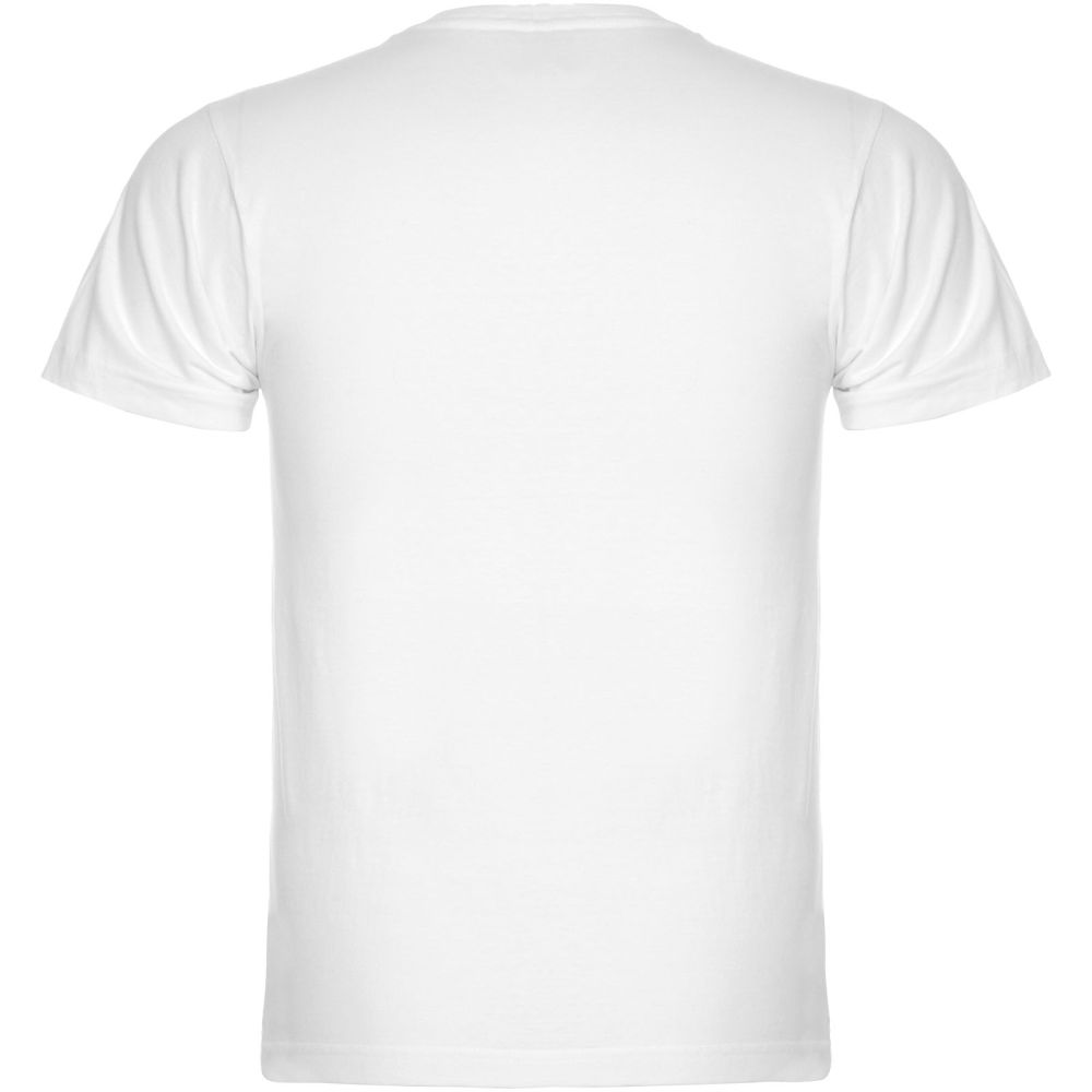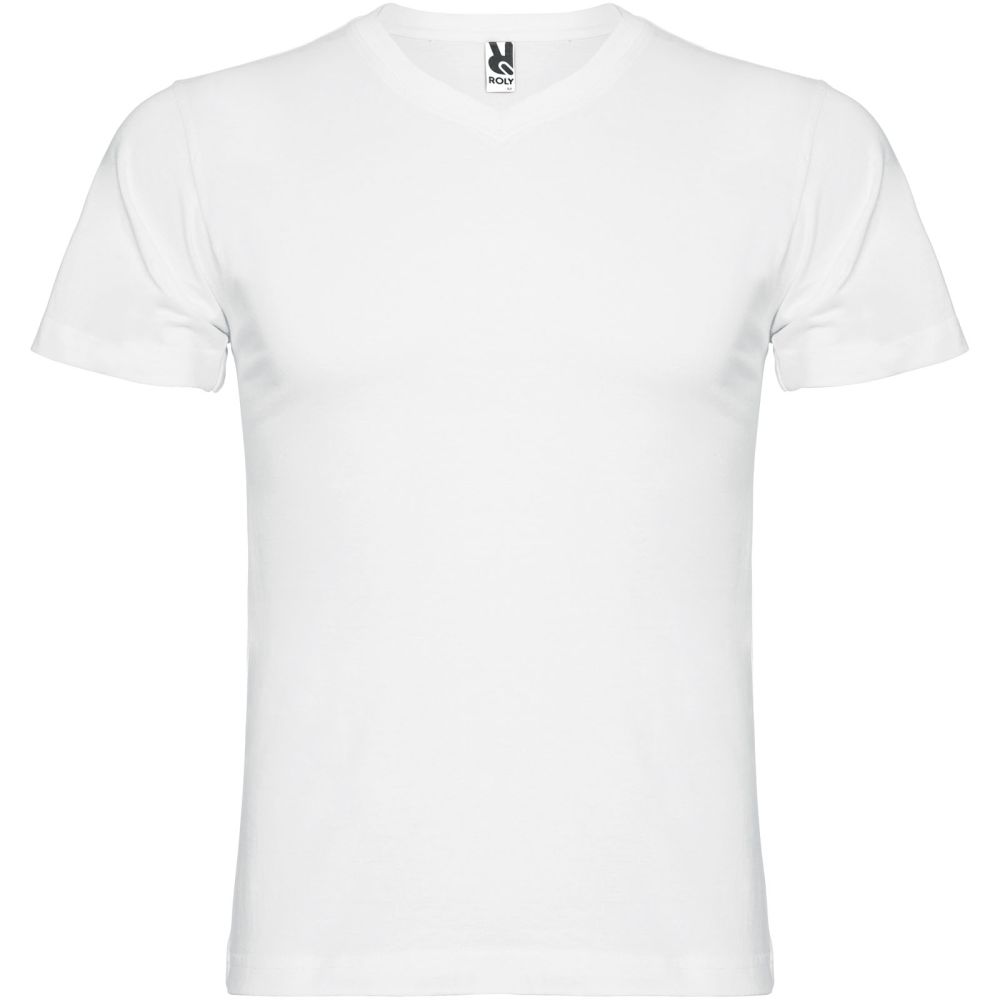Tubular short-sleeve t-shirt with 2-layer v-neck. Reinforced covered seams in collar and shoulders. Removable label. The model is 190 cm and is wearing size L. Single Jersey knit of 100% Cotton, 155 g/m2.