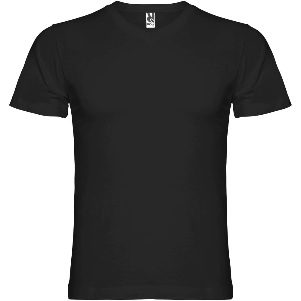 Tubular short-sleeve t-shirt with 2-layer v-neck. Reinforced covered seams in collar and shoulders. Removable label. The model is 190 cm and is wearing size L. Single Jersey knit of 100% Cotton, 155 g/m2.
