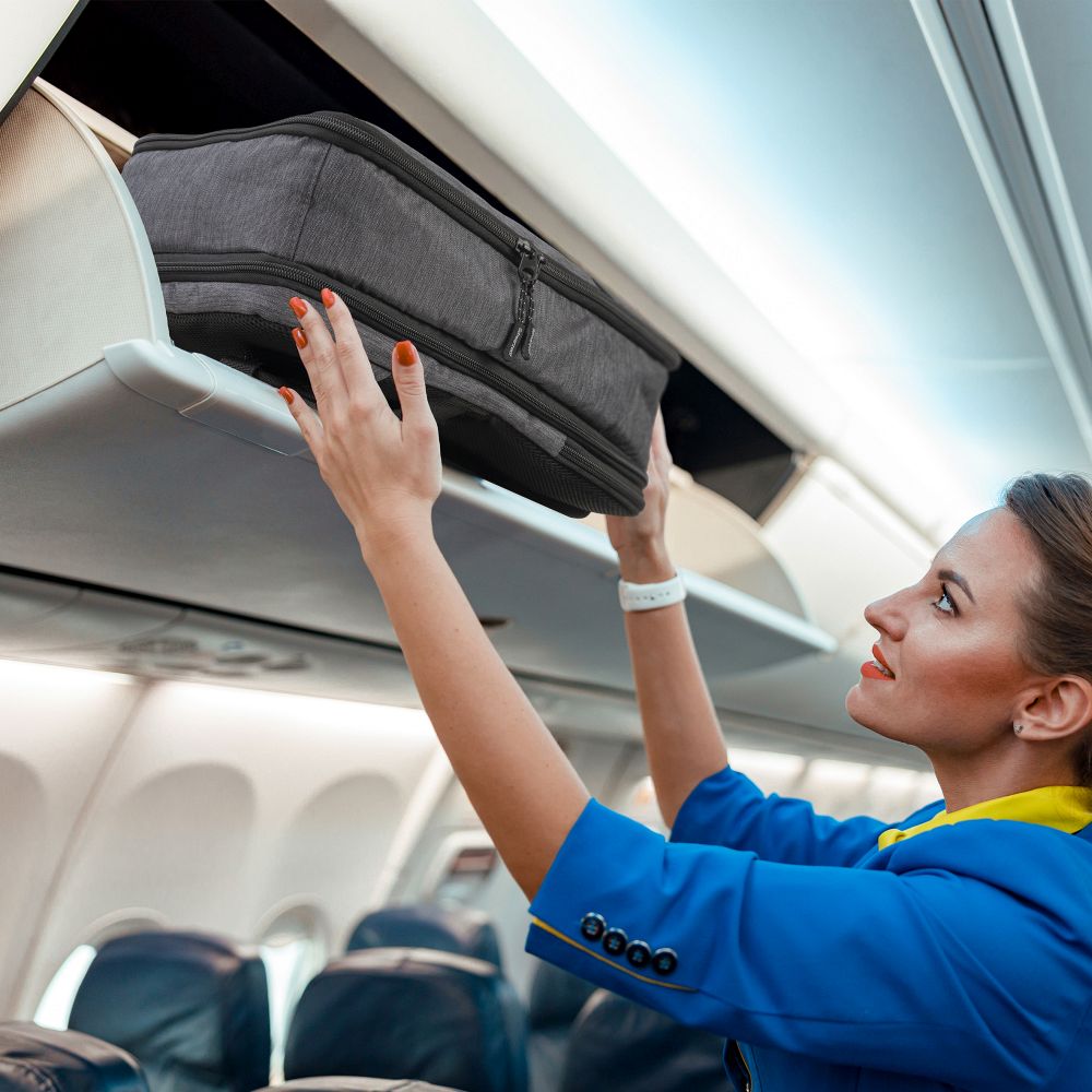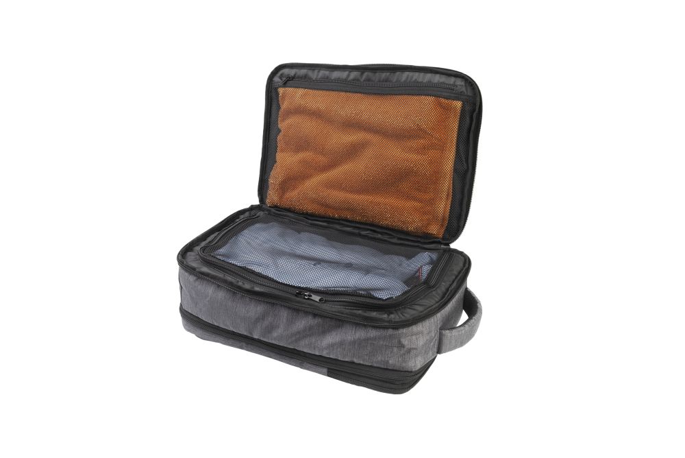 Schwarzwolf travel backpack in a grey color. The backpack is interesting because it resembles a travel suitcase in composition and is suitable as carry-on luggage on board a plane. It has an internal compartment that includes a large mesh pocket zipper and mesh pocket with zipper. The exterior of the backpack includes a front zippered pocket, a zippered laptop pocket on the back of the backpack, an expandable zipper that increases a capacity of the backpack and a strap to attach to the suitcase. The backpack has a padded back system and shoulder straps. Features a grab loop. From 300 pieces, we now offer you the possibility of custom-made production in the color of your choice and also with pulls or inner lining with your logo.