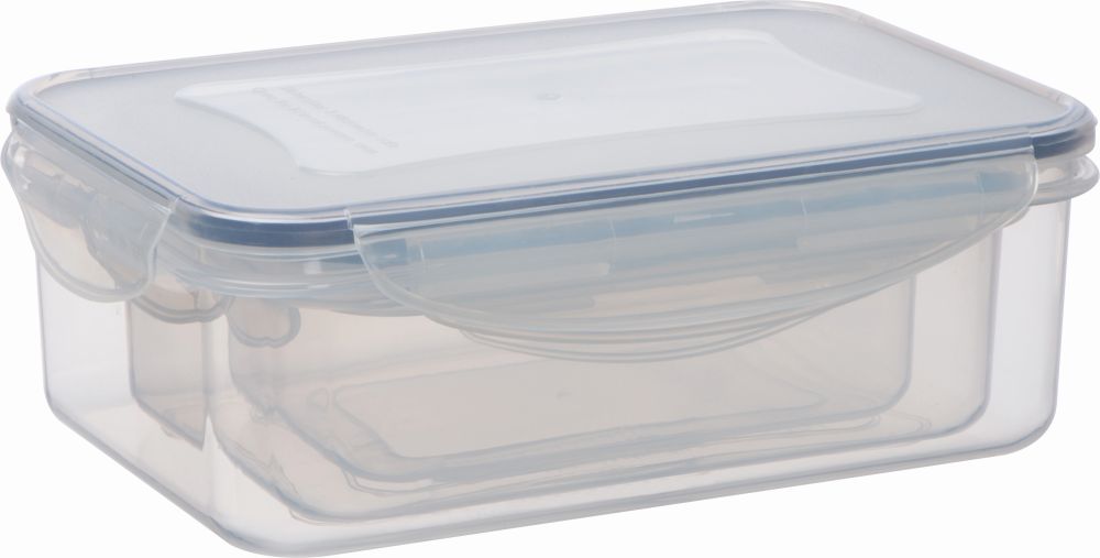 Set of 3 storage boxes in the sizes 1.5, 1 and 0.5 litres made of plastic with fail-safe click closure. We print your logo on the lid of the largest box.