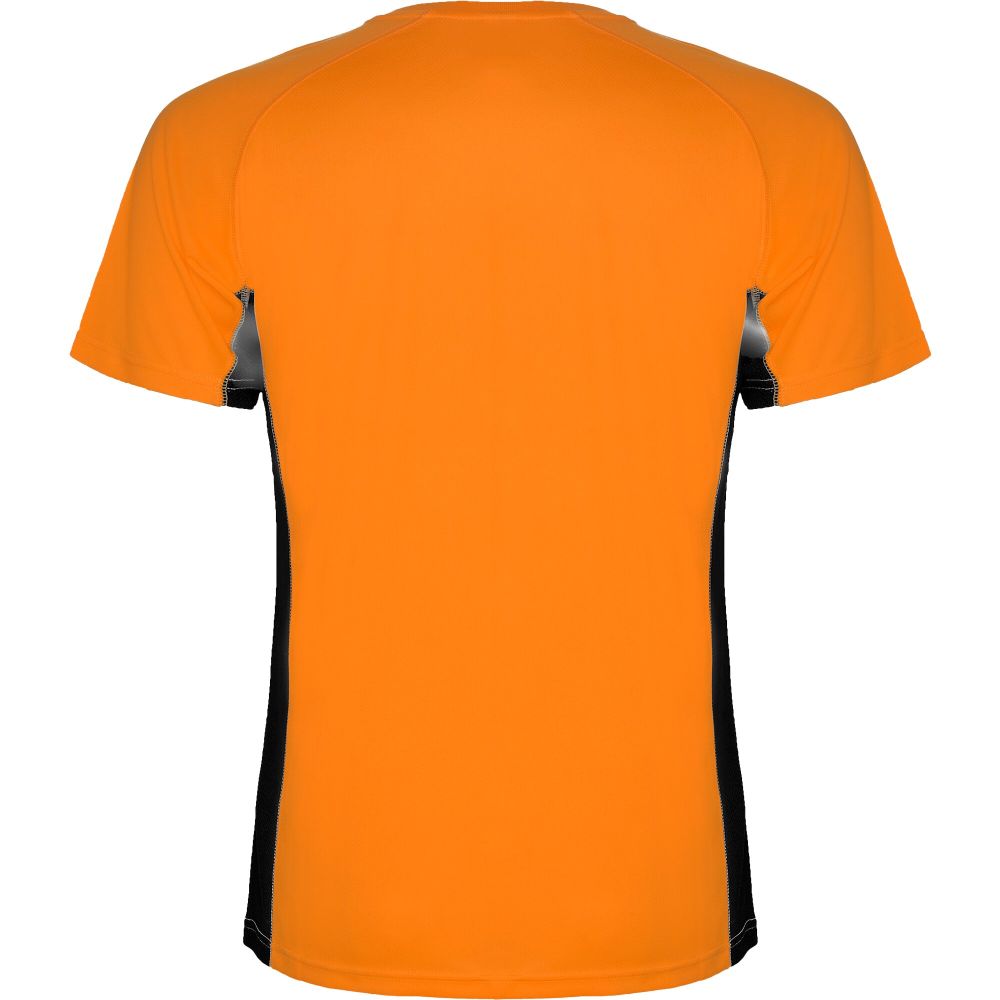 Technical and breathable fabric. A combination of two polyester fabrics: Main fabric in birds eye, side panels and inner sleeve in microperforated fabric. Crew neck with inner reinforced covered seams. Removable label. Mesh with cool fit finish of 100% Polyester, 140 g/m2, Contrast fabric, Mesh with cool fit finish of 100% Polyester, 140 g/m2.