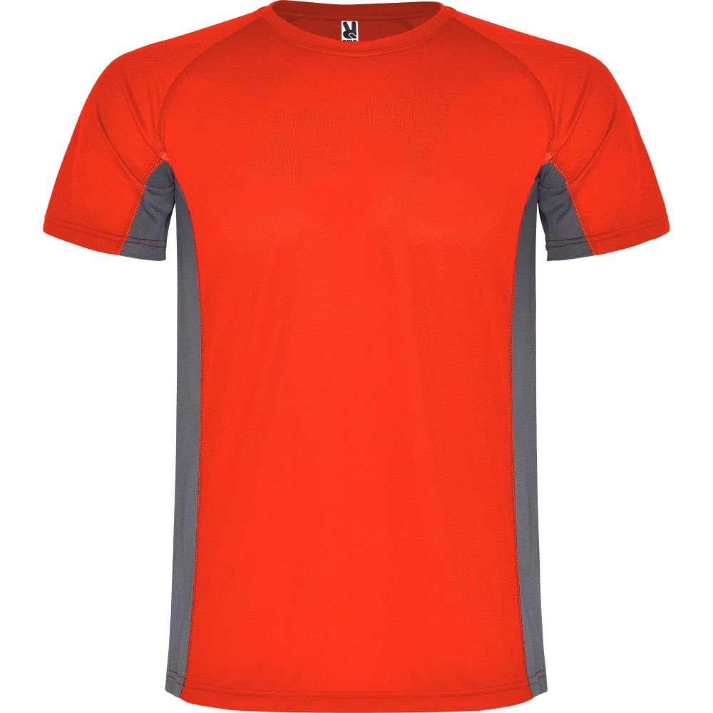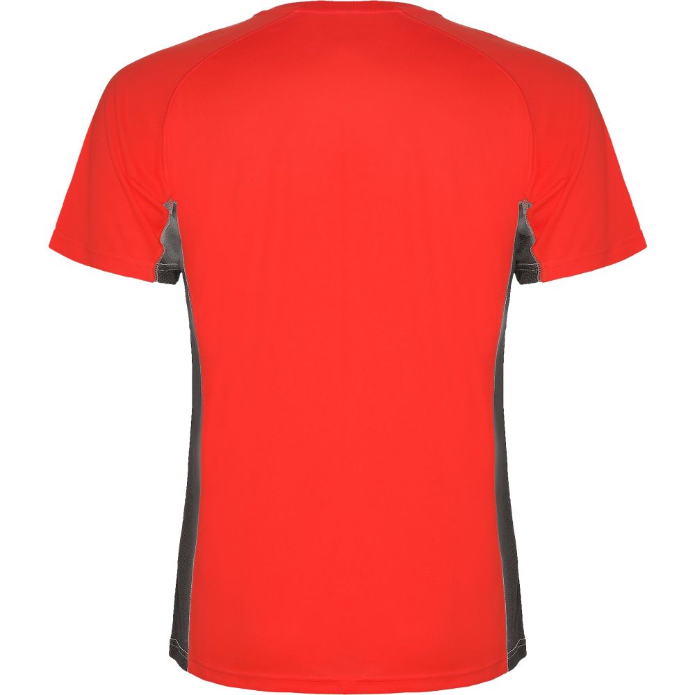 Technical and breathable fabric. A combination of two polyester fabrics: Main fabric in birds eye, side panels and inner sleeve in microperforated fabric. Crew neck with inner reinforced covered seams. Removable label. Mesh with cool fit finish of 100% Polyester, 140 g/m2, Contrast fabric, Mesh with cool fit finish of 100% Polyester, 140 g/m2.