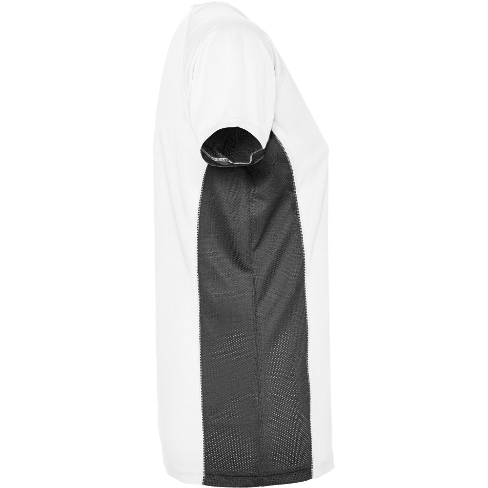 Technical and breathable fabric. A combination of two polyester fabrics: Main fabric in birds eye, side panels and inner sleeve in microperforated fabric. Crew neck with inner reinforced covered seams. Removable label. Mesh with cool fit finish of 100% Polyester, 140 g/m2, Contrast fabric, Mesh with cool fit finish of 100% Polyester, 140 g/m2.