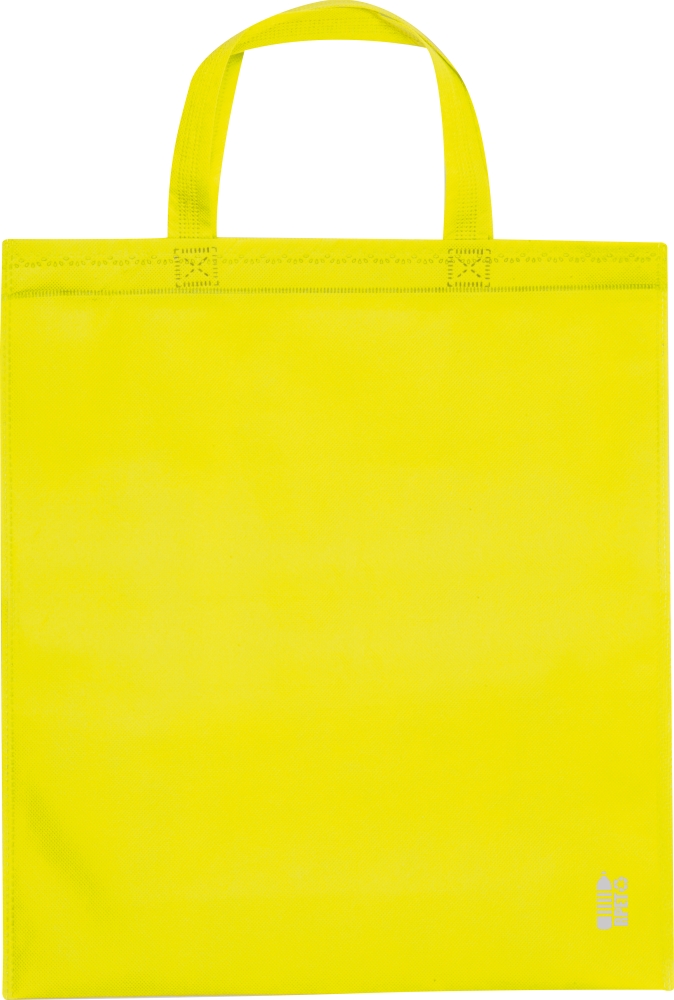Large shopping bag made of recycled non-woven (grammage 80mg/m2) in many different colours with long handles. The promotional print is on one side. Dimensions: 36 x 0,3 x 41 cm