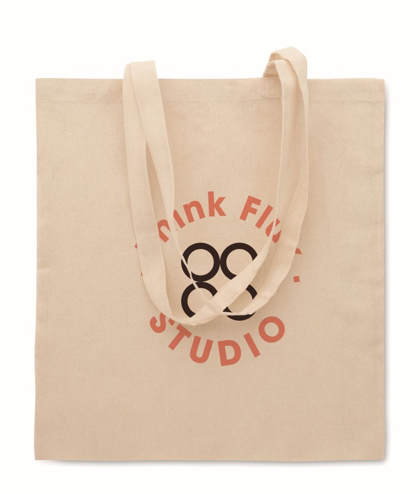 Polycotton (70% cotton and 30% polyester) shopping bag with long handles. 130 gr/m².