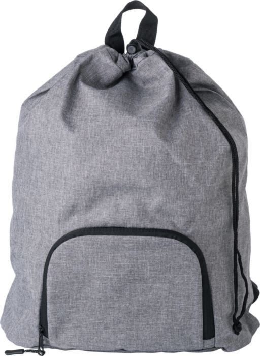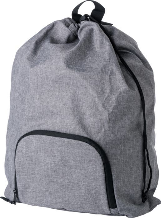 300D Two Tone foldable drawstring backpack. Is delivered folded. Dimensions: 33 x 12 x 43 cm.