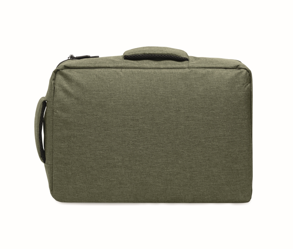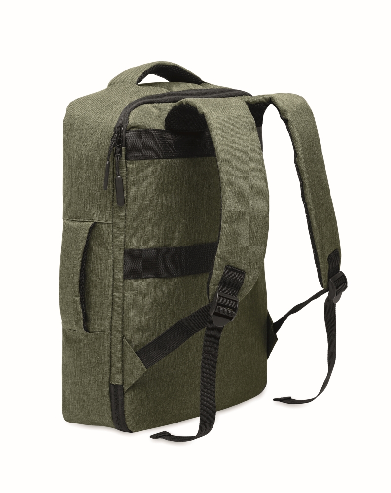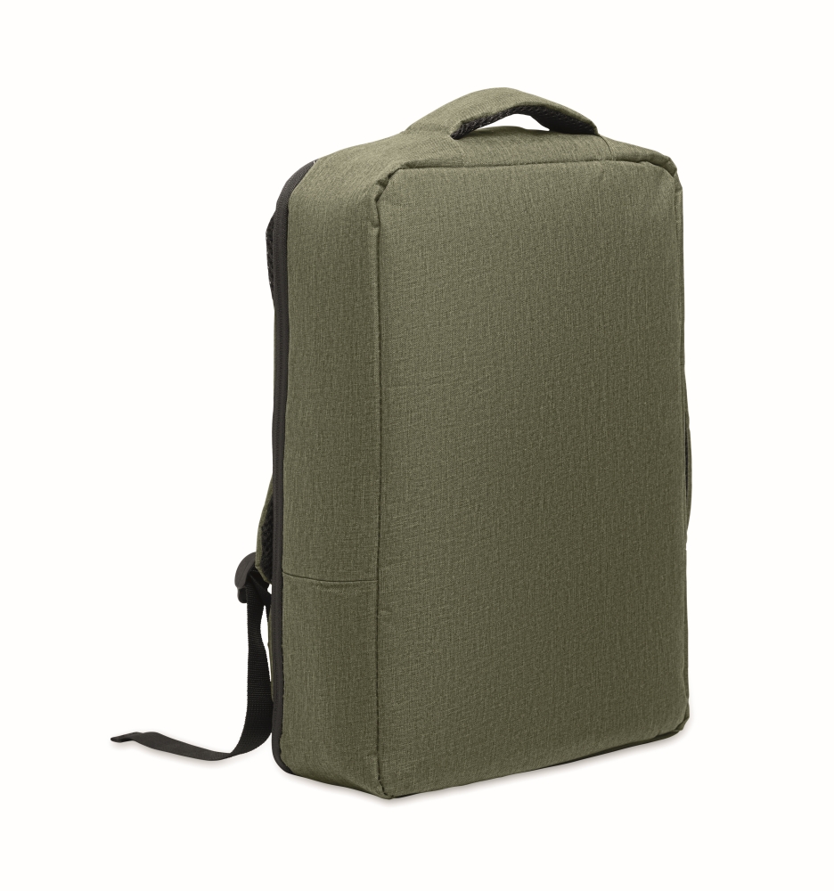 Slim 15 inch laptop backpack in 300D RPET with safe 180 degree opening with 210D RPET lining. Includes laptop compartment, 2 internal slip pockets, 2 internal pen pockets and 2 padded carry handles. Soft padded back and shoulder straps. Suitcase sleeve. Dimensions: 41 x 29 x 11cm