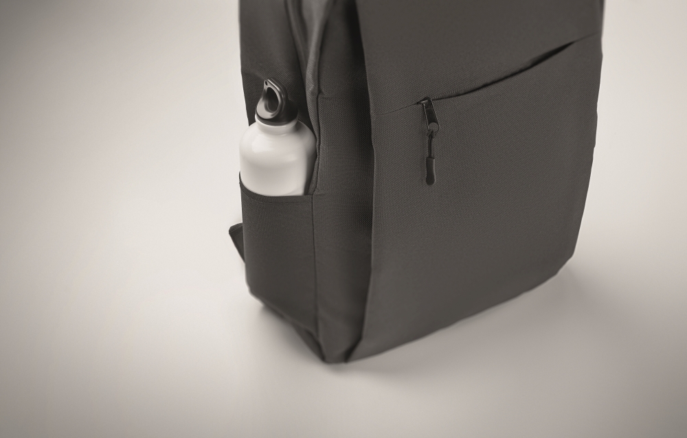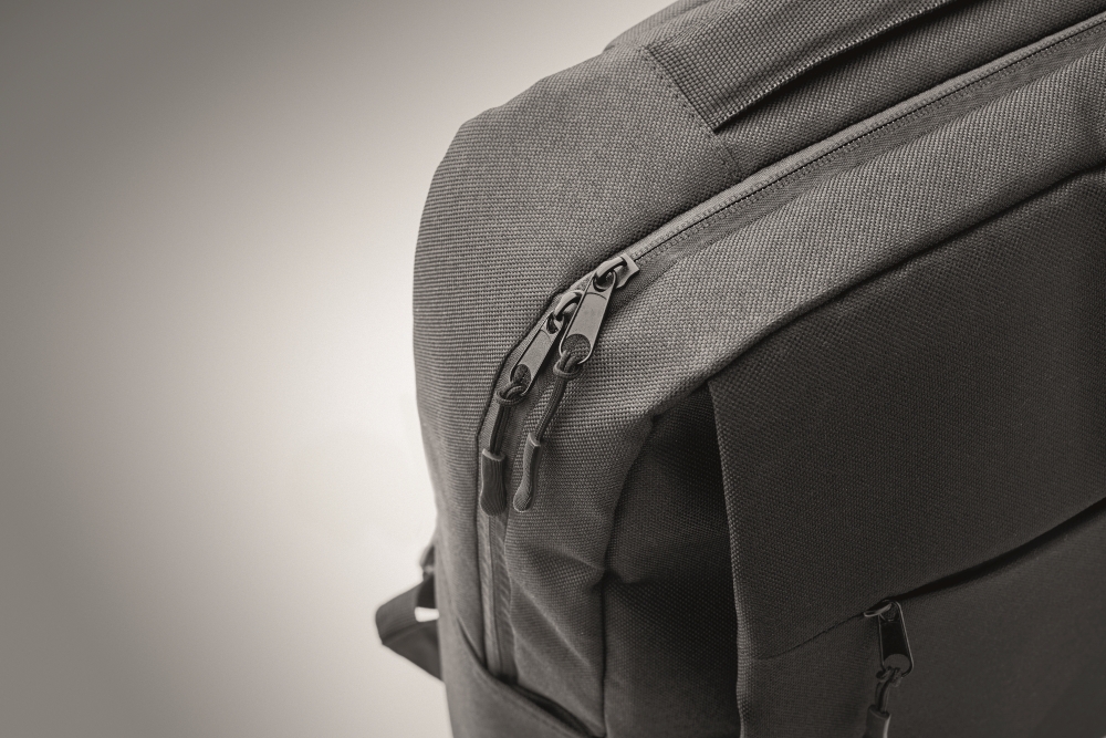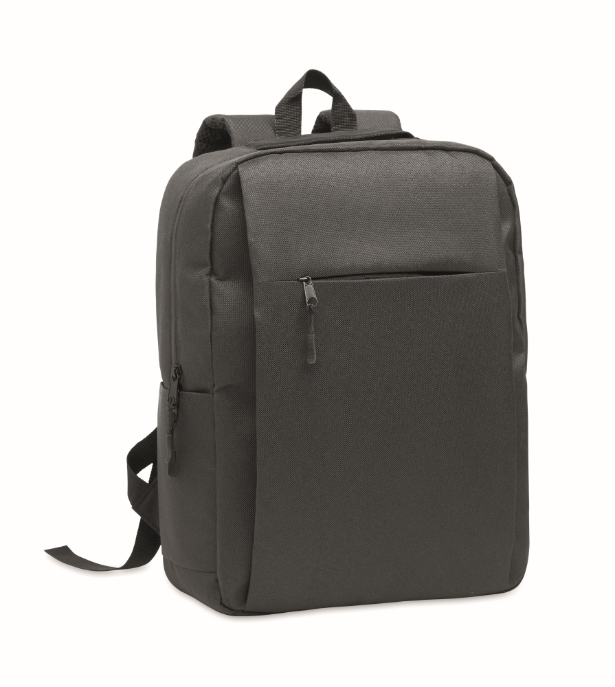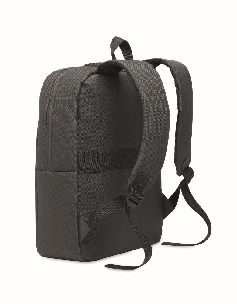 Has 15 inch laptop compartment, a 10 inch tablet outside zippered pocket, 2 internal pockets, 2 internal pen pockets, zippered front pocket. 2 side pockets. Soft padded back and shoulder straps. Suitcase sleeve. Dimensions: 31 x 13 x 30 cm