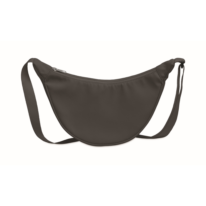 Half moon shaped cross body bag in 400D Oxford and 210D RPET lining. One main zippered pocket and 2 inside pockets.Dimensions: 33 x 10 x 15,5cm