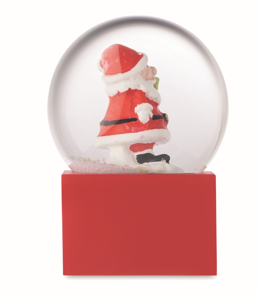 Small Christmas glass snow ball ornament with polyresin base. Dimensions: 4,5 x 4,5 x 6 cm