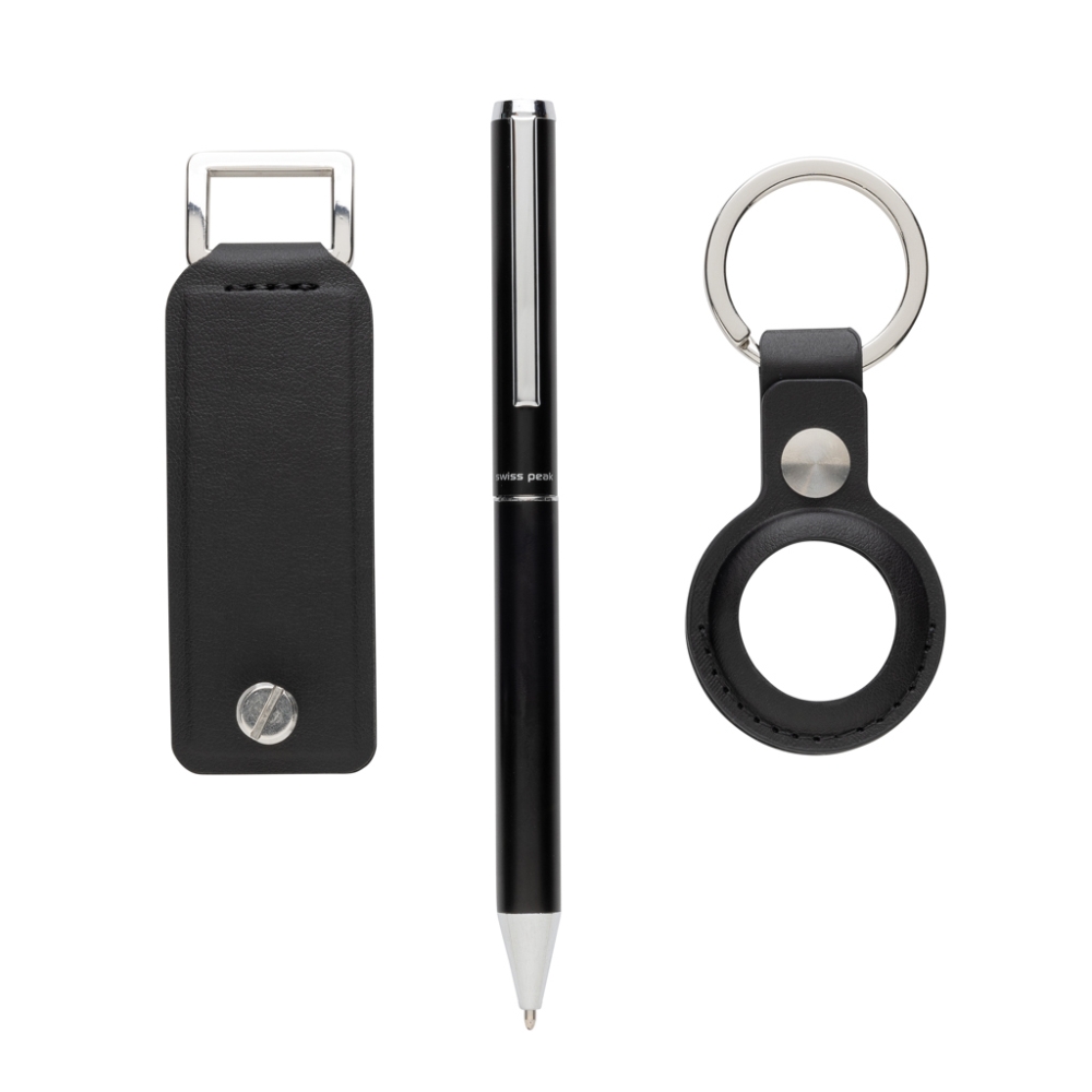 Swiss Peak Tula RCS certified key organiser, practical AirTag Holder and recycled aluminium Pen. Crafted for efficiency and style, the key organiser keeps your keys in check (for max 4 keys), while the AirTag Holder ensures you never lose track of your va