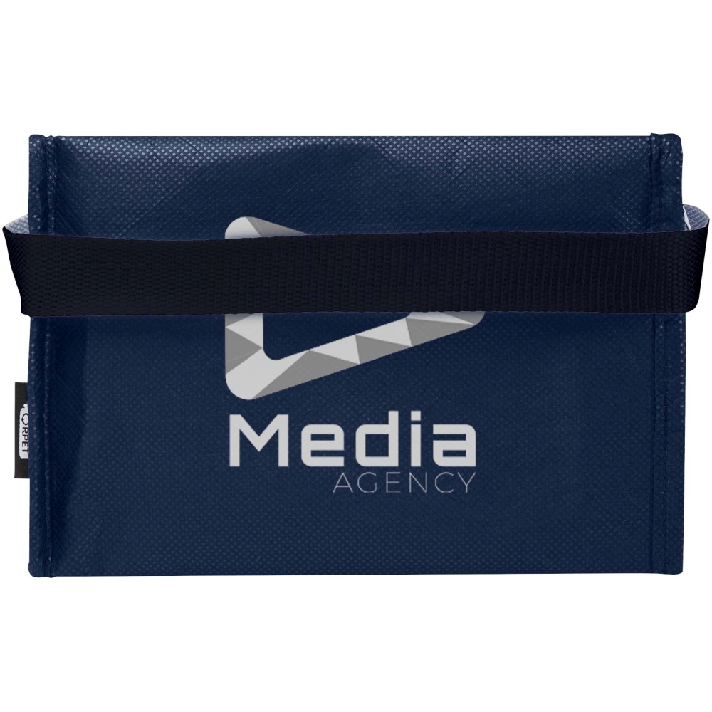 Made from durable and tear resistant non-woven RPET, the 6-can Spectrum recycled cooler bag is suitable for up to 6 cans, and features an easy to carry webbing handle. Volume capacity: 4 litres. Dimensions: 20 x 16 x 13 cm