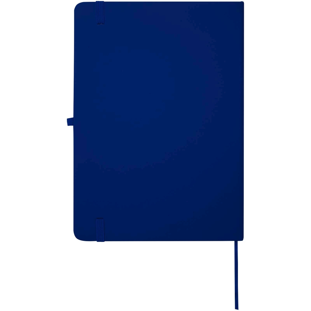 The Spectrum Plus A5 hard cover notebook with rounded corners is not only an office essential but also a great opportunity to promote your brand. The cardboard notebook has a soft-feel cover and 80 lined cream coloured sheets of 70 g/m2, ideal for writing down quick ideas or long notes. The notebook has a pen loop, elastic closure, ribbon marker and accordion pocket. Dimensions: 21 x 14,5 cm