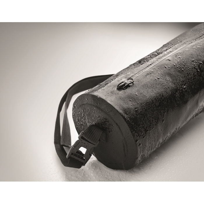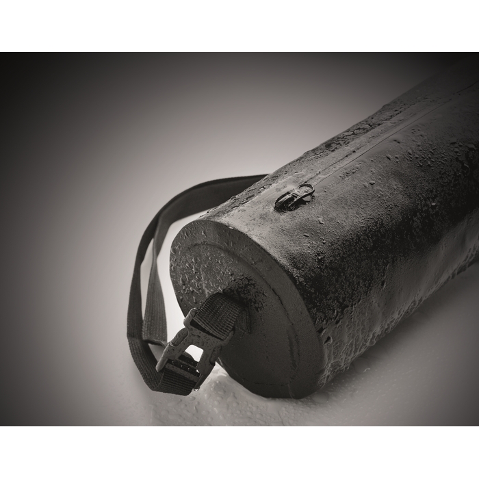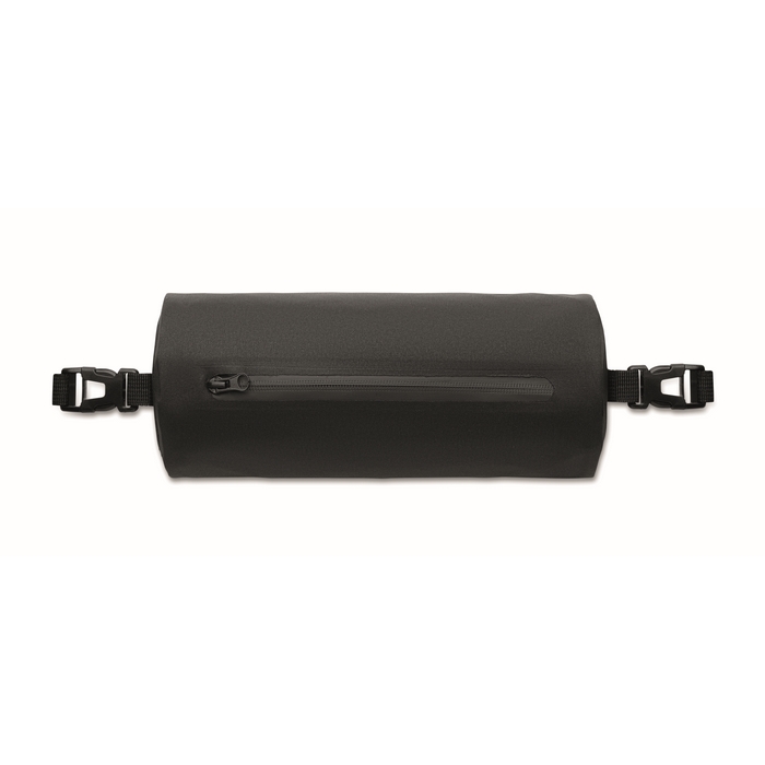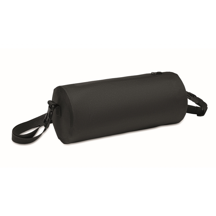 Sports dry bag in 300D RPET with PVC coating. It has a detachable and adjustable shoulder straps. Water resistant fabric. Capacity 3L.Dimensions: 12 x 27cm