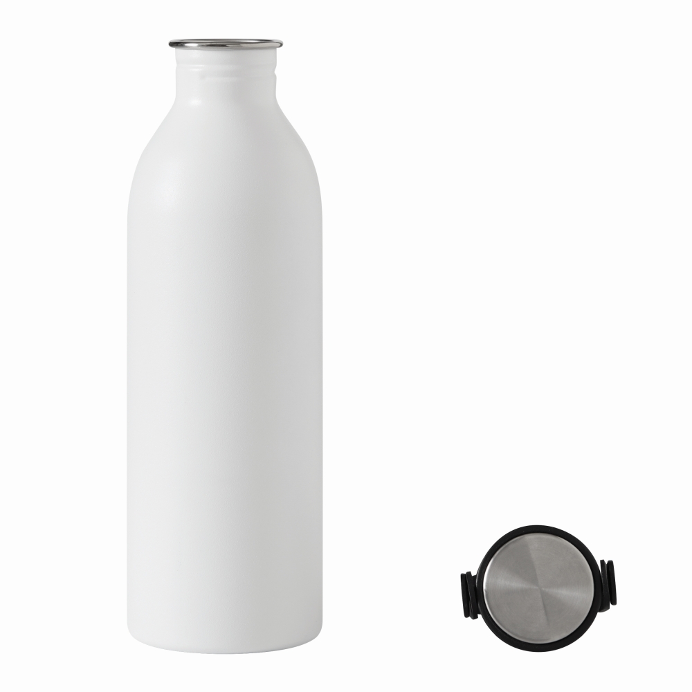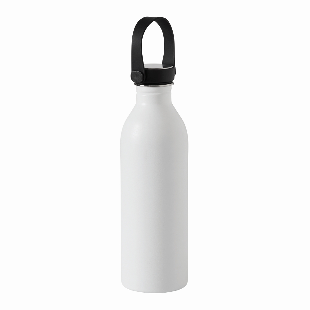 Vacuum bottle matt powder coating, plastic cap with stainless steel top surface, secure screw cap and silicone carrying strap, capacity approx. 550 ml. Dimensions: O6.6 x 21 cm