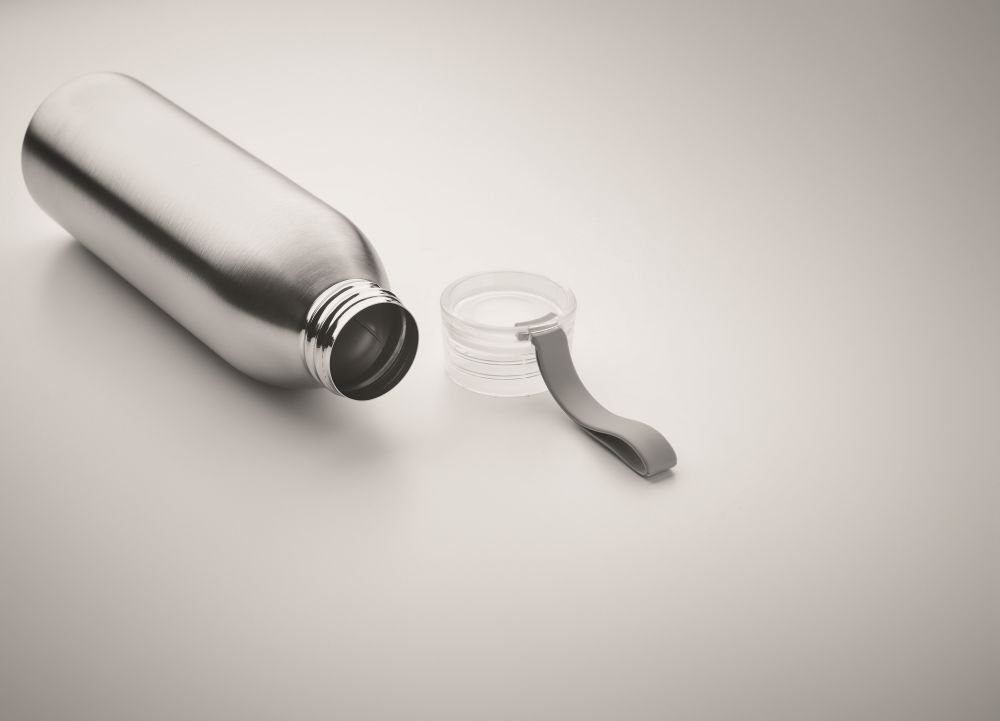 Single wall stainless steel bottle with PP lid and silicone hanger. Capacity: 650 ml.